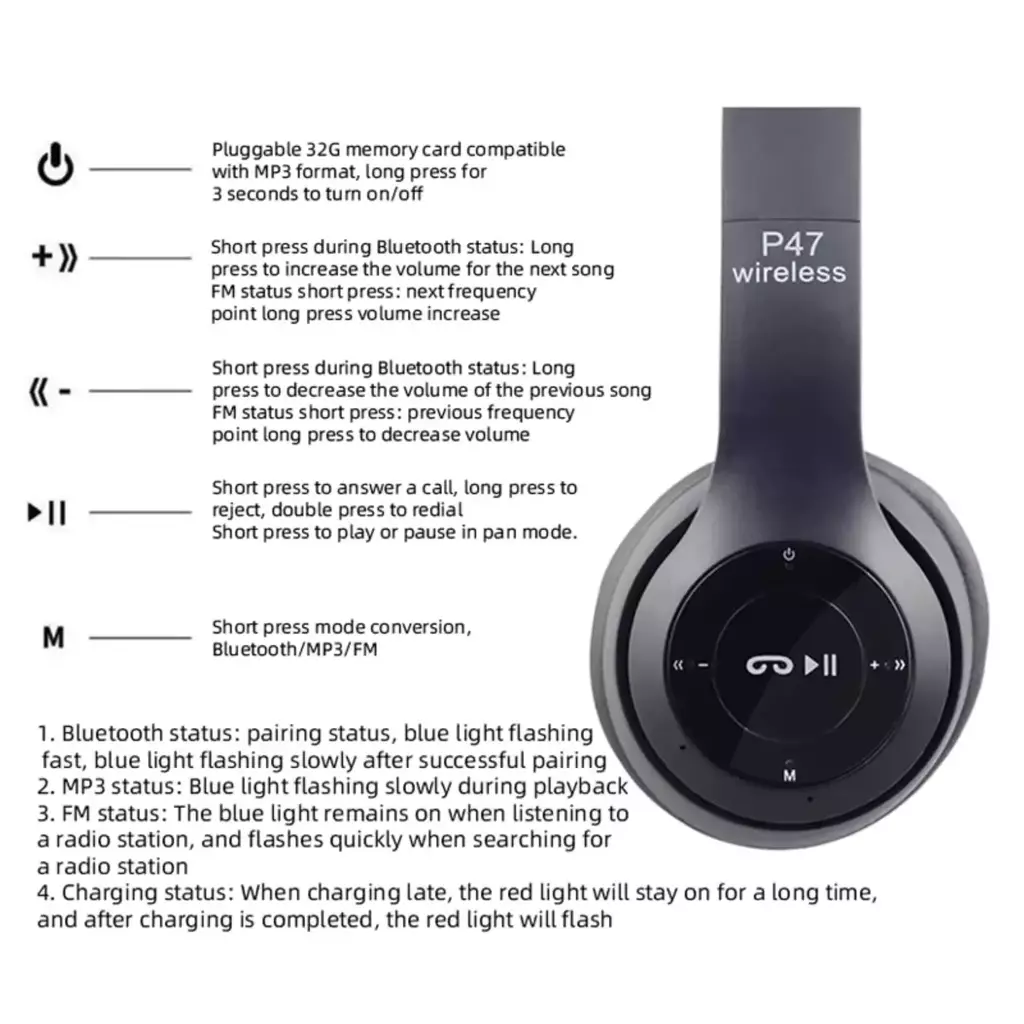 Feito para oferecer uma experiência sonora imersiva, o P47 possui drivers de alta qualidade que garantem graves profundos, médios nítidos e agudos cristalinos. Seja para ouvir música, assistir filmes ou atender chamadas, a qualidade de som superior do P47 transforma cada momento em uma experiência auditiva envolvente.