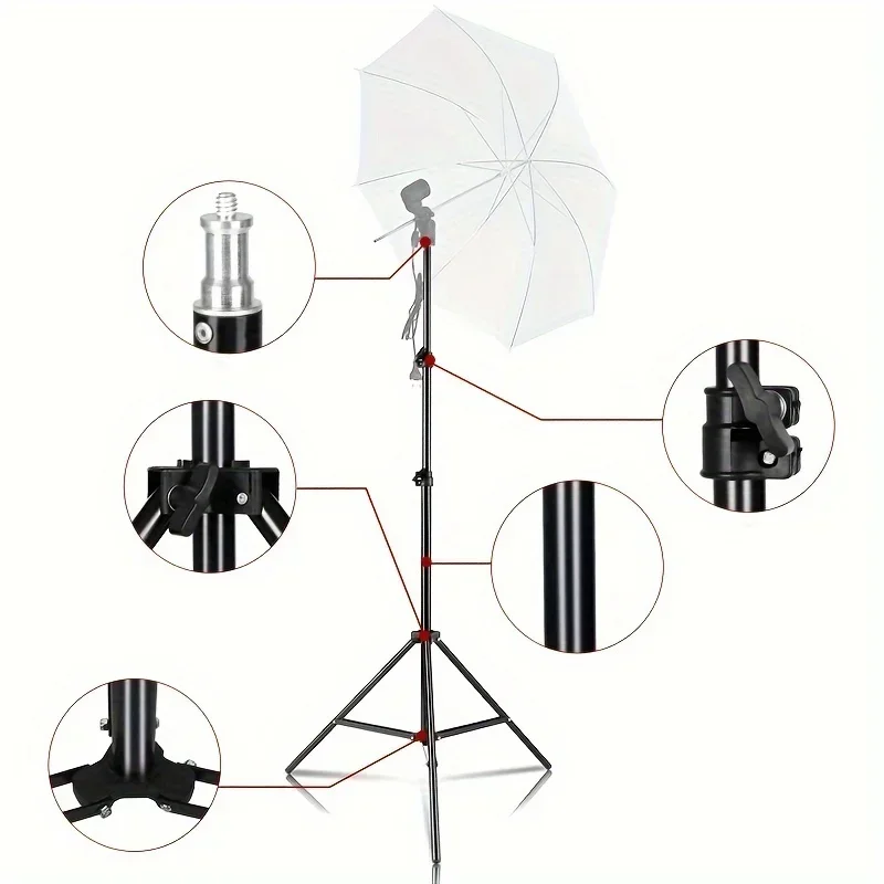 Compatibilidade universal: ideal para suportar softbox, luz de LED, flashes e outros acessórios de iluminação, tornando-se indispensável para fotógrafos, videomakers, maquiadores e criadores de conteúdo.